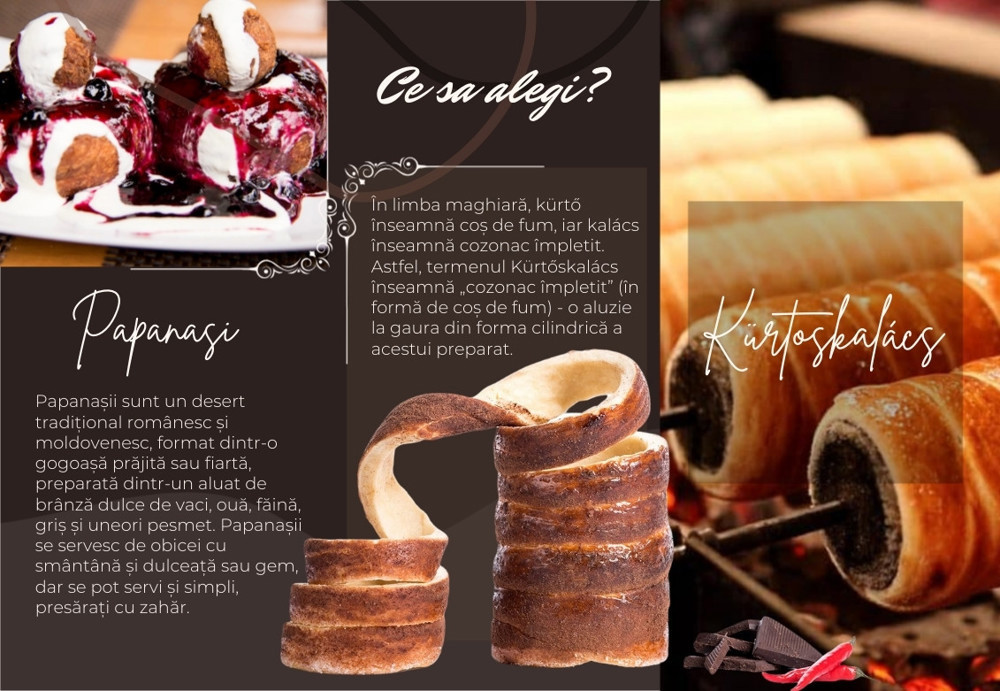 Papanasi sau un kurtoskalacs cald, perfect pentru desert ori pe drum.
